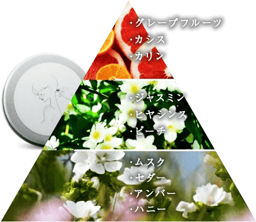 オレンジやラベンダーなど甘すぎない爽やかな香り。森林浴のように心を落ち着かせてくれる。
