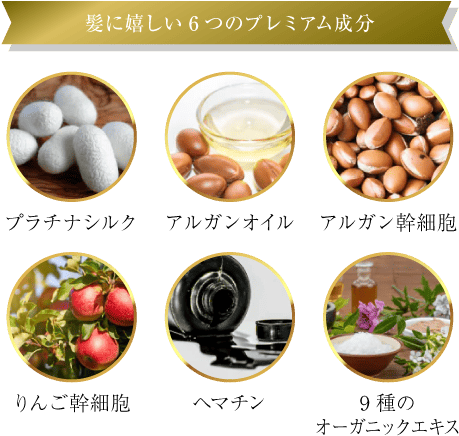 ヒアルロン酸やプラチナシルクといった毛髪補修成分を豊富に配合し、毛髪の内外に働きかけ健康的に美しい髪へと仕上げます