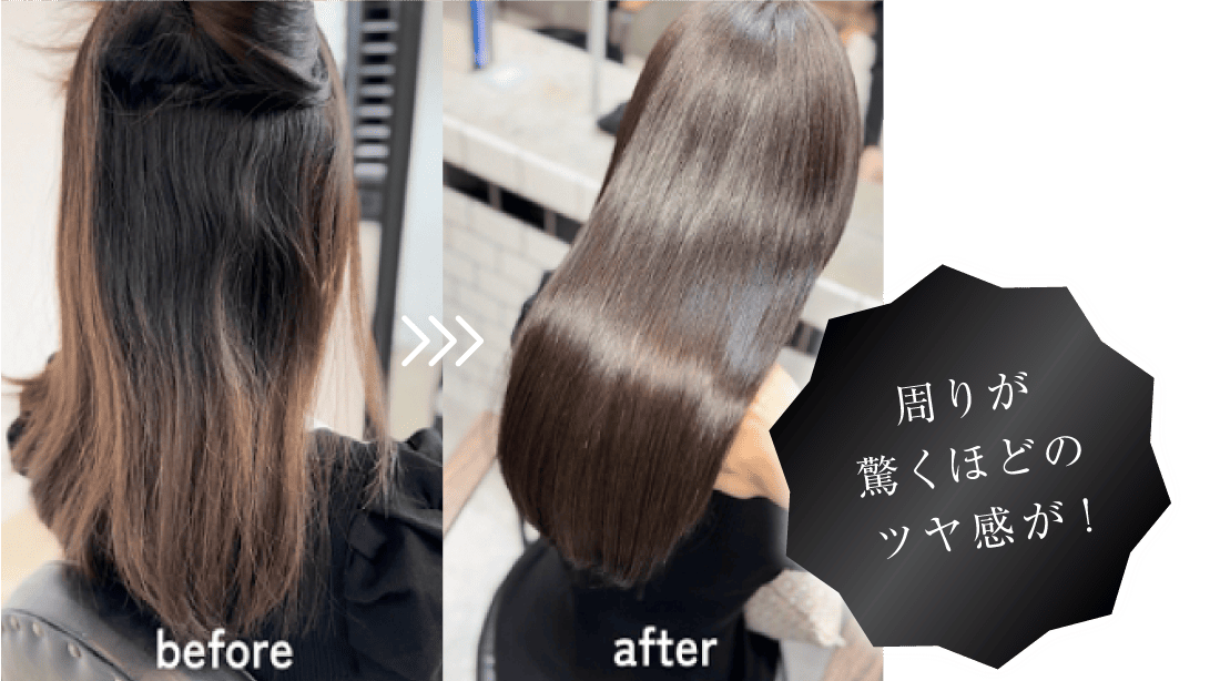 さらに、毛髪表面に吸着することで、キューティクルのリフトアップを抑制し、ツヤと滑らかさを与えます。