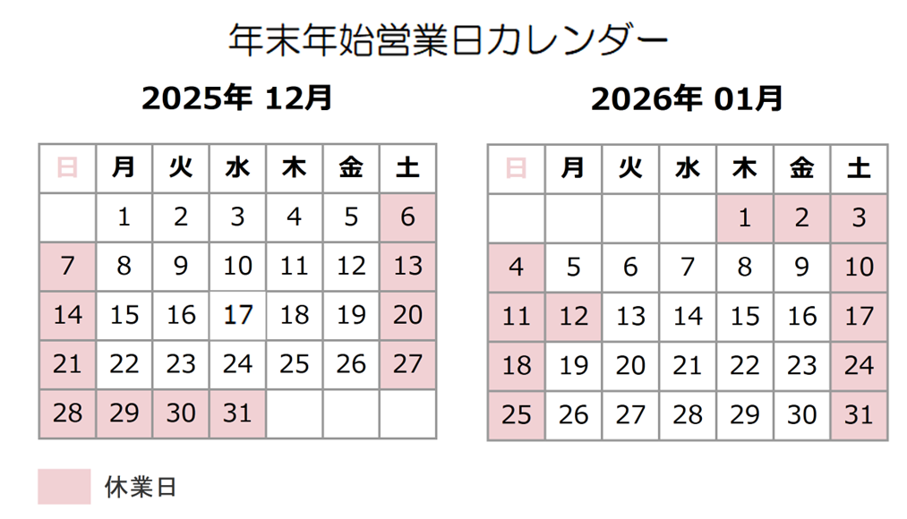 年末年始の休業期間と商品の出荷について下記の通りご案内いたします。